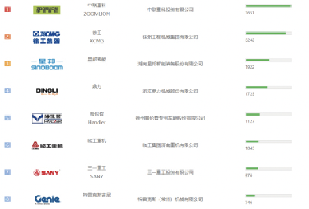 國(guó)內(nèi)市場(chǎng)的快速開(kāi)拓,品牌銷量增勢(shì)強(qiáng)勁,重塑產(chǎn)業(yè)格局,高機(jī)品牌關(guān)注度蟬聯(lián)第一。